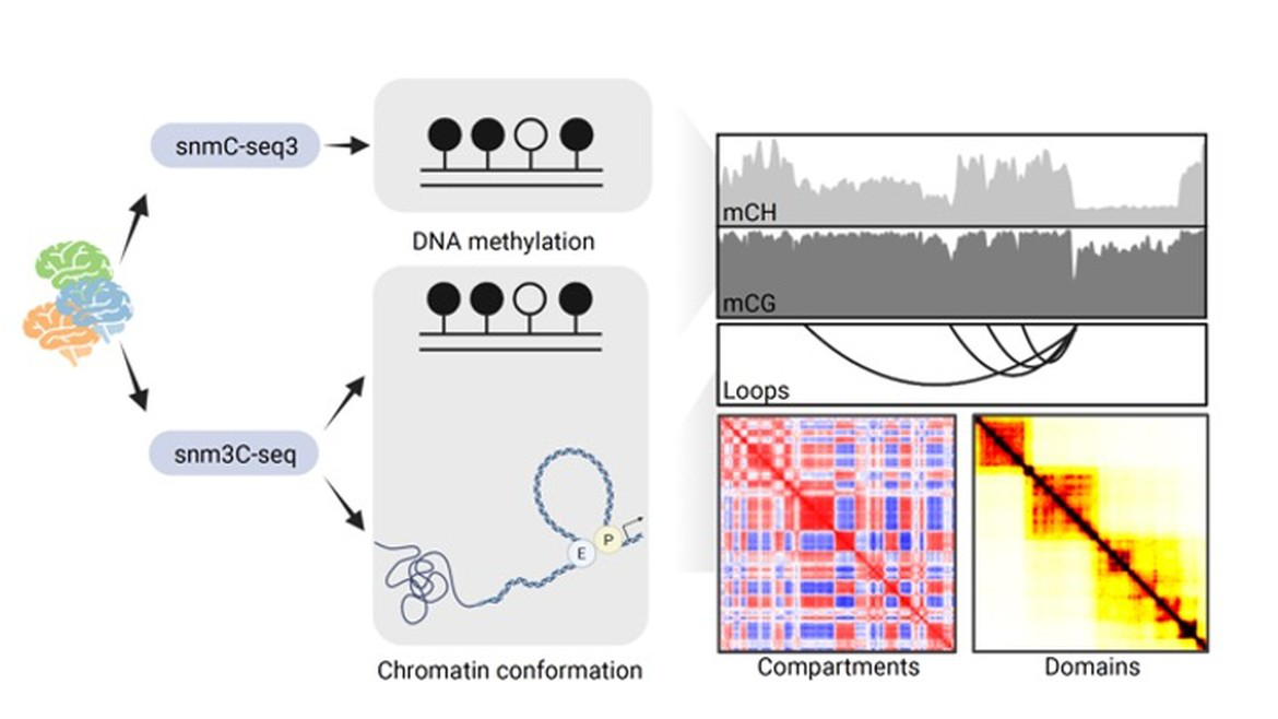 Tian, W., Zhou, J., Bartlett, A., Zeng, Q., Liu, H., Castanon, R.G., ... Ecker, J. R. (2023). Single-cell DNA methylation and 3D genome architecture in the human brain. Science. DOI: 10.1126/science.adf5357
